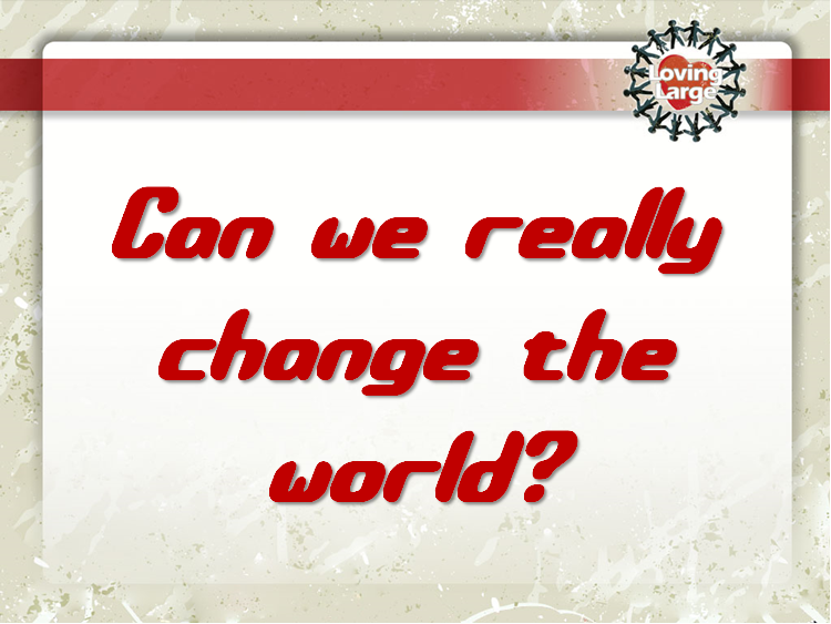 Sunday, November 16, 2014 November 20, 2014 by Rev. Don Tabberer Loving Large: “Can We Really Change the World?” – #4 of 4