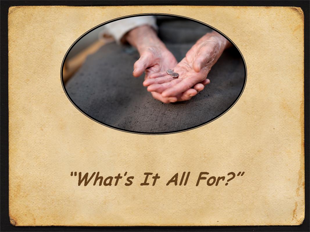 Sunday, November 8, 2015 November 16, 2015 by Rev. Don Tabberer “What’s It All For?” – #6 in SERIES: Service Makes a Difference