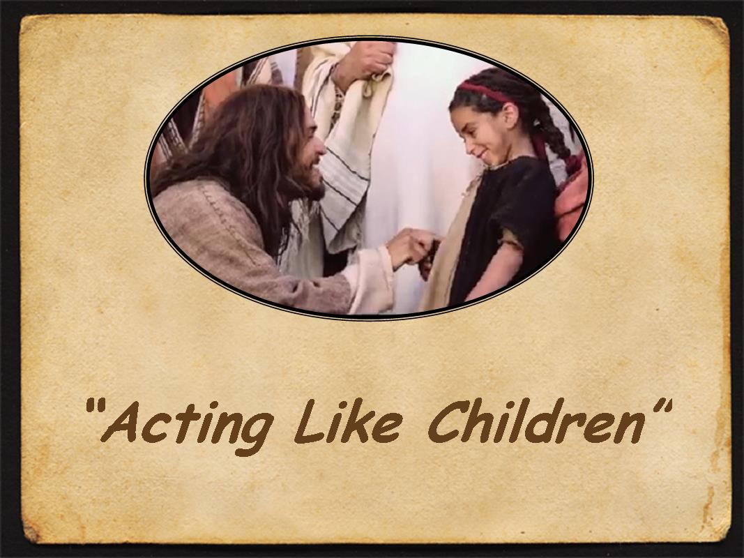 Sunday, October 4, 2015 October 12, 2015 by Rev. Don Tabberer “Acting Like Children” – #1 in series: SERVICE MAKES A DIFFERENCE.